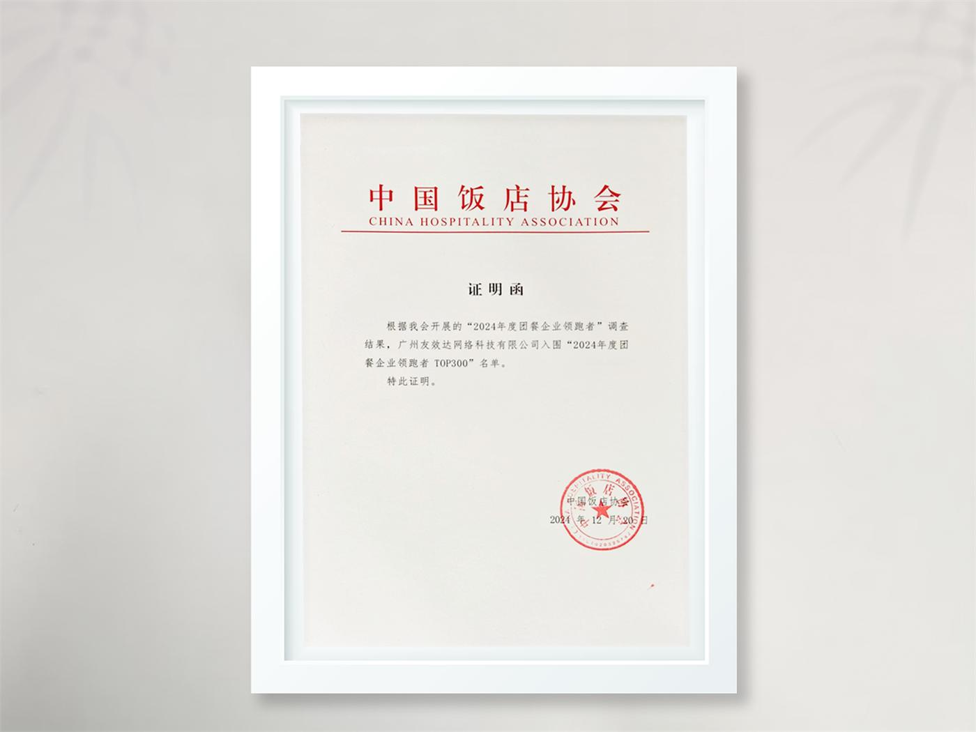 悠饭荣获2024团餐产业高质量发展精选案例及团餐企业领跑者荣誉