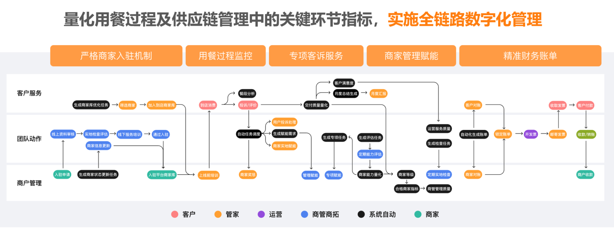 悠饭自主研发的创新O2O综合用餐解决方案,通过整合线上的数字营销和线下实体服务,量化用餐全过程及供应链管理中的关键环节指标,实施全链路数字化管理。悠饭将用餐过程及服务量化为5个阶段、6大角色、46个环节,实现从原材料采购到最终配送的全链条管理,确保了团餐服务的稳定性和可靠性,真正解决了餐饮行业的供应链管理难题。悠饭的全链路数字化集成管理,正重塑团餐行业的未来,确保了服务的稳定性和可靠性。