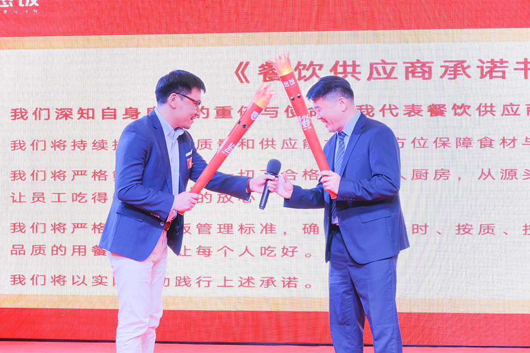 在服务承诺仪式上,随着一句句掷地有声的庄严诺言响彻宴会厅,这一刻,"让每个人吃好“的承诺仿佛在舞台上可视化。每一个环节,都彰显着悠饭对卓越品质的不懈追求和对客户承诺的坚守。