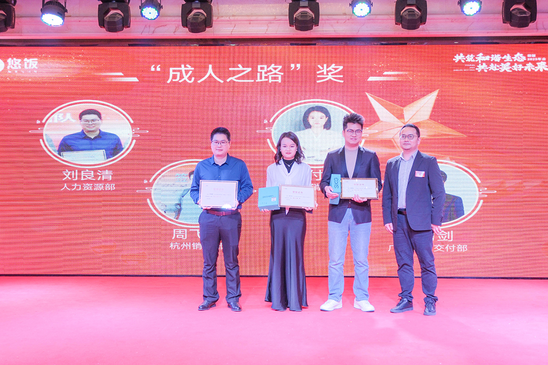 在悠饭,全体员工基于对美好人格的思考与实践,共同设计、修建和完善“成大人之路”。每一位员工的成长与突破,都是企业前行的动力。为此,悠饭特设《成人之路奖》和《让每个人吃好奖》,旨在鼓励员工在个人成长与职业发展中不断超越自我,实现价值,成就更好的自己。